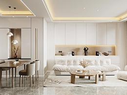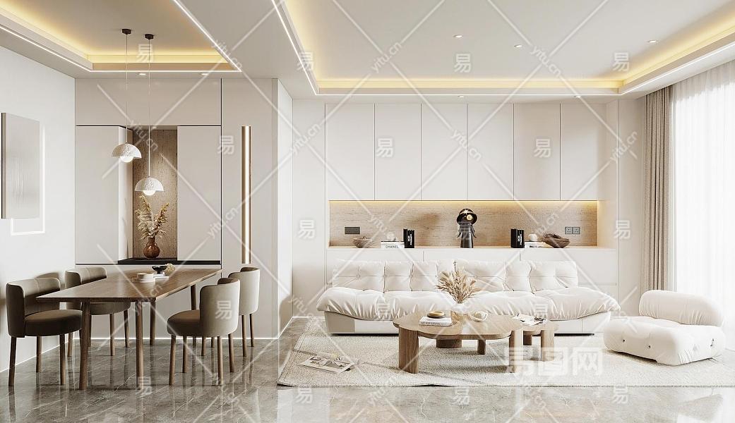 现代简约客餐厅 布艺沙发 懒人沙发 餐桌椅组合 饰品摆设 茶几组合