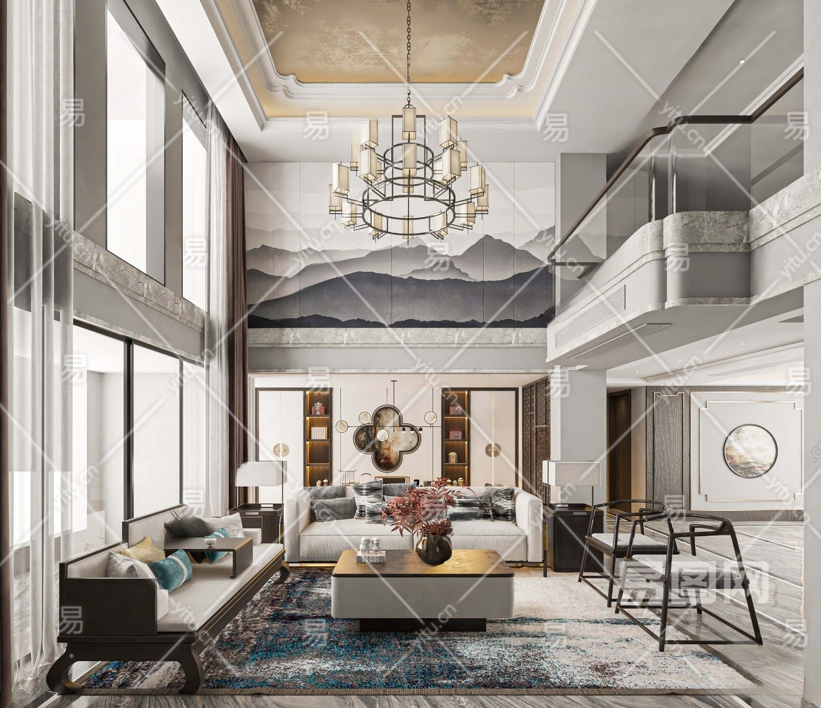 新中式复式别墅客厅