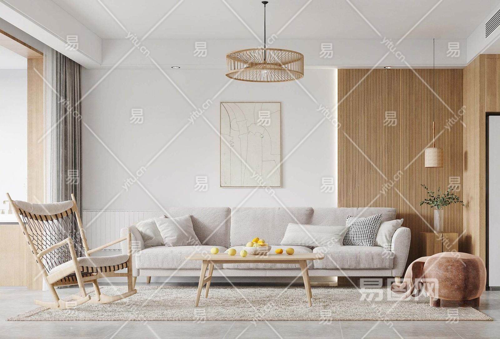 日式客厅 多人沙发 茶几