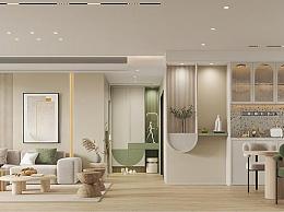 现代奶油风客餐厅 牛油果 沙发茶几餐桌椅岛台