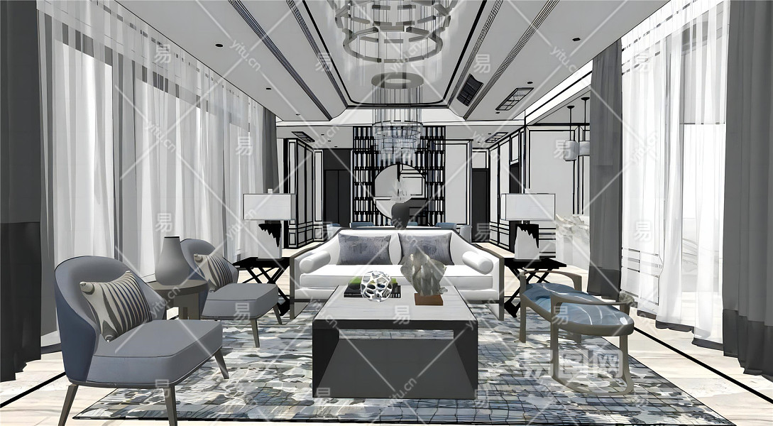 当前的位置:首页 > sketchup > sketchup模型 > 家装 > 客厅 > 新中式客餐厅沙发茶几组合