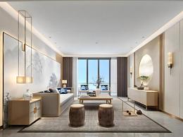 新中式客餐厅沙发茶几组合