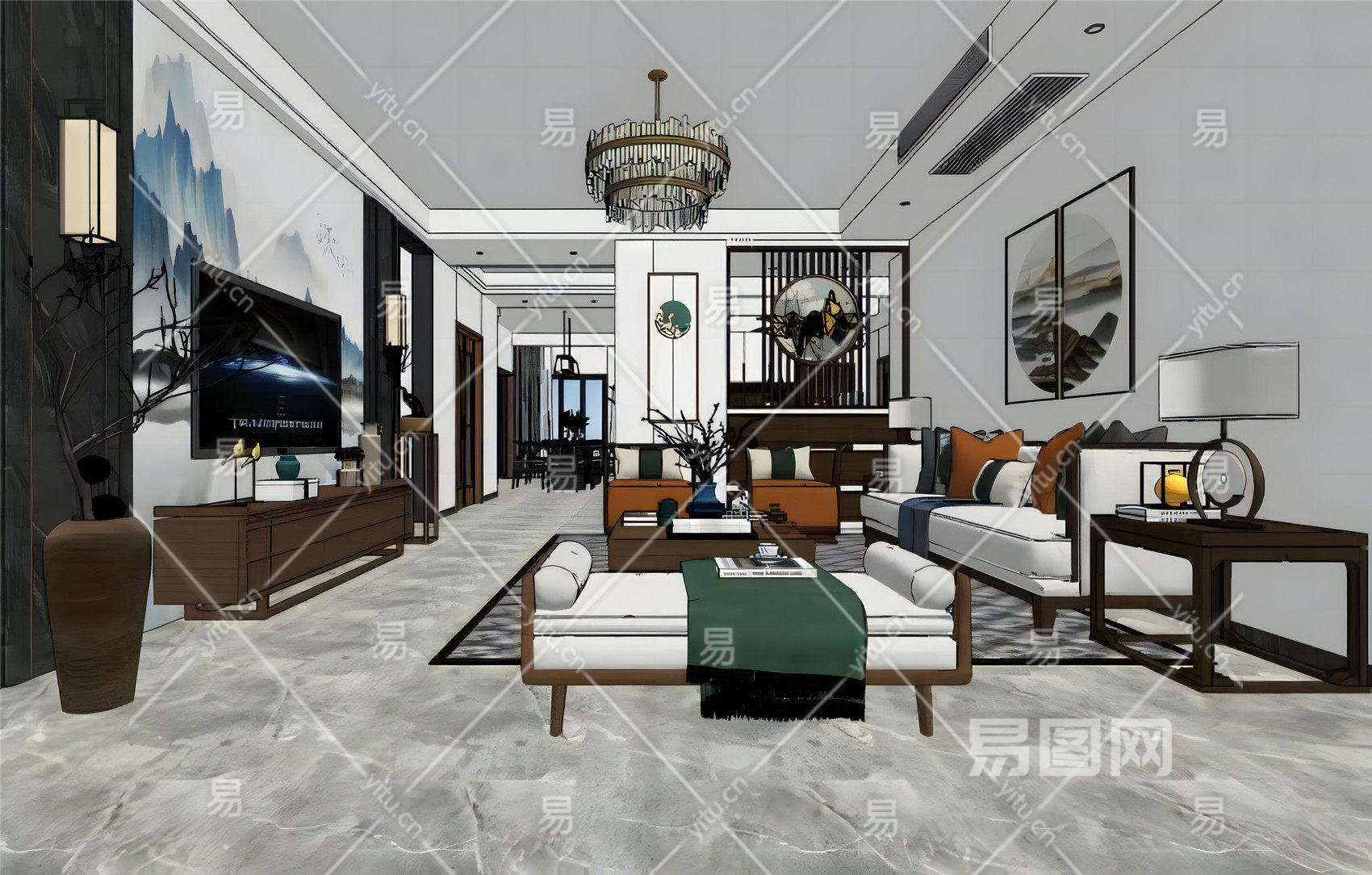 当前的位置:首页 > sketchup > sketchup模型 > 家装 > 客厅 > 新中式客餐厅沙发茶几组合