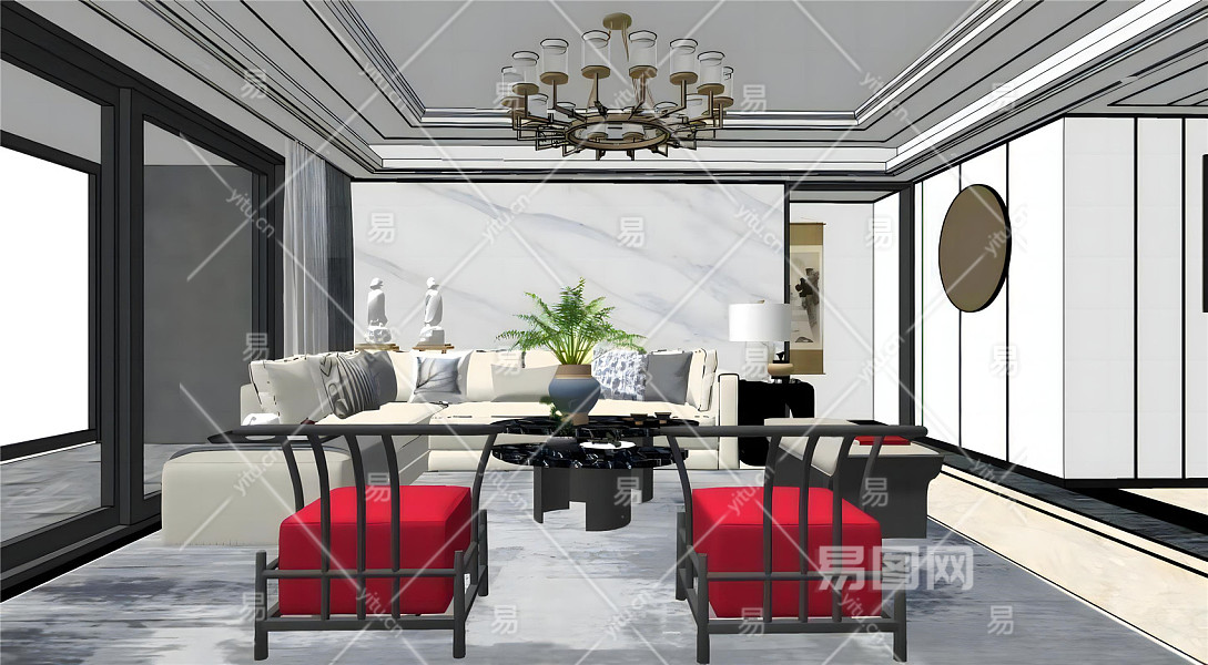 当前的位置:首页 > sketchup > sketchup模型 > 家装 > 客厅 > 新中式客餐厅沙发茶几组合