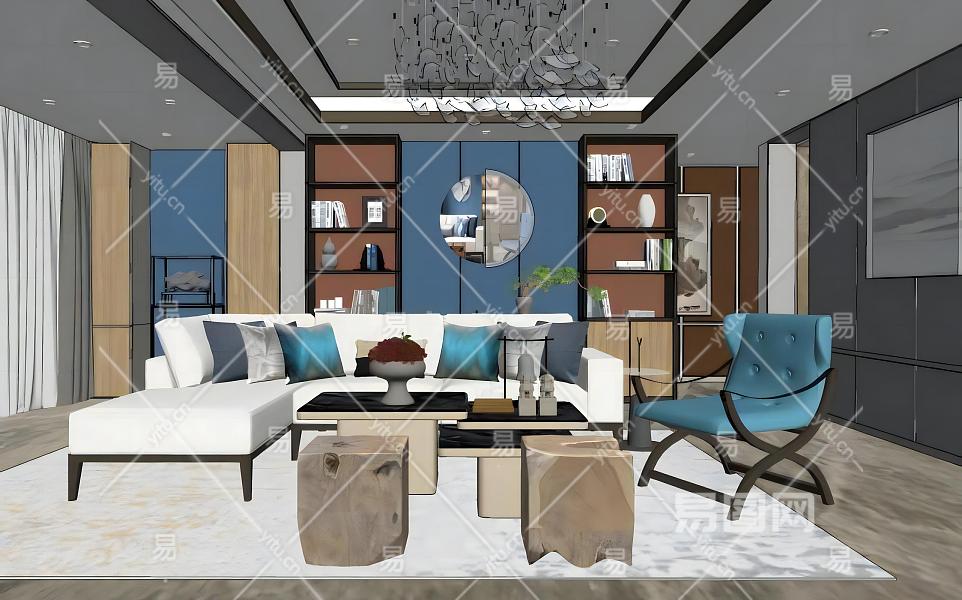 当前的位置:首页 > sketchup > sketchup模型 > 家装 > 客厅 > 新中式客餐厅沙发茶几组合
