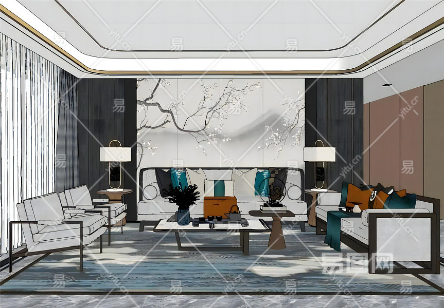 当前的位置:首页 > sketchup > sketchup模型 > 家装 > 客厅 > 新中式客餐厅沙发茶几组合