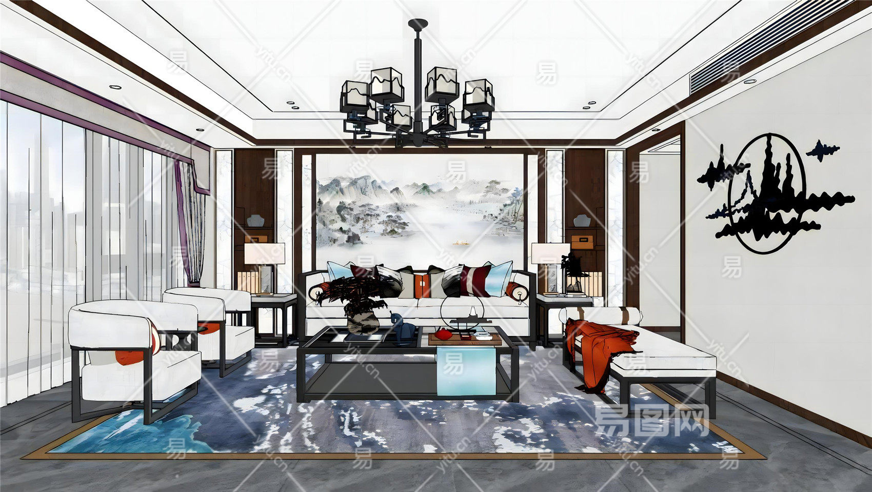 新中式客餐厅沙发茶几组合