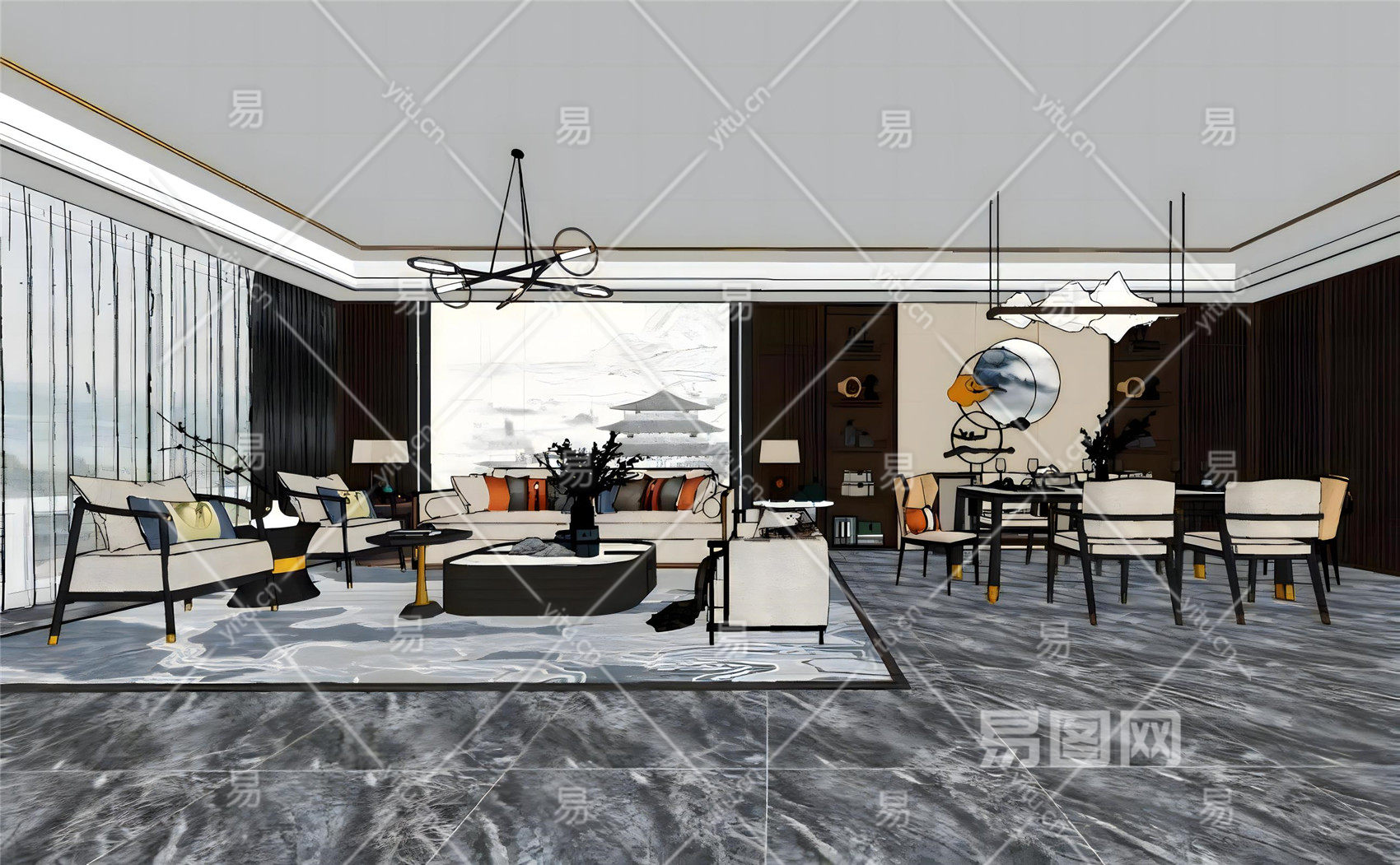 当前的位置:首页 > sketchup > sketchup模型 > 家装 > 客厅 > 新中式客餐厅沙发茶几组合