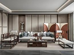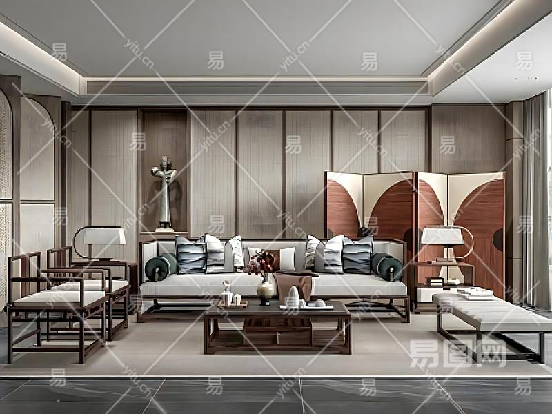 新中式客餐厅沙发茶几组合