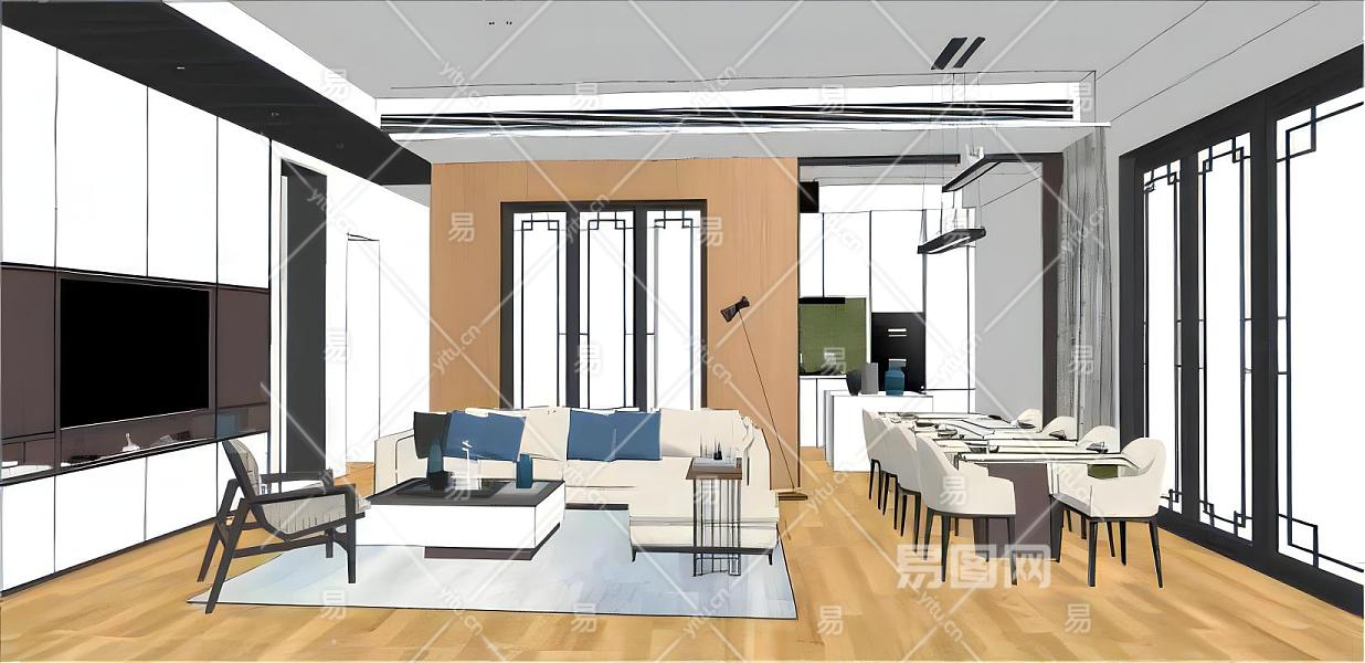 当前的位置:首页 > sketchup > sketchup模型 > 家装 > 客厅 > 新中式客餐厅沙发茶几组合