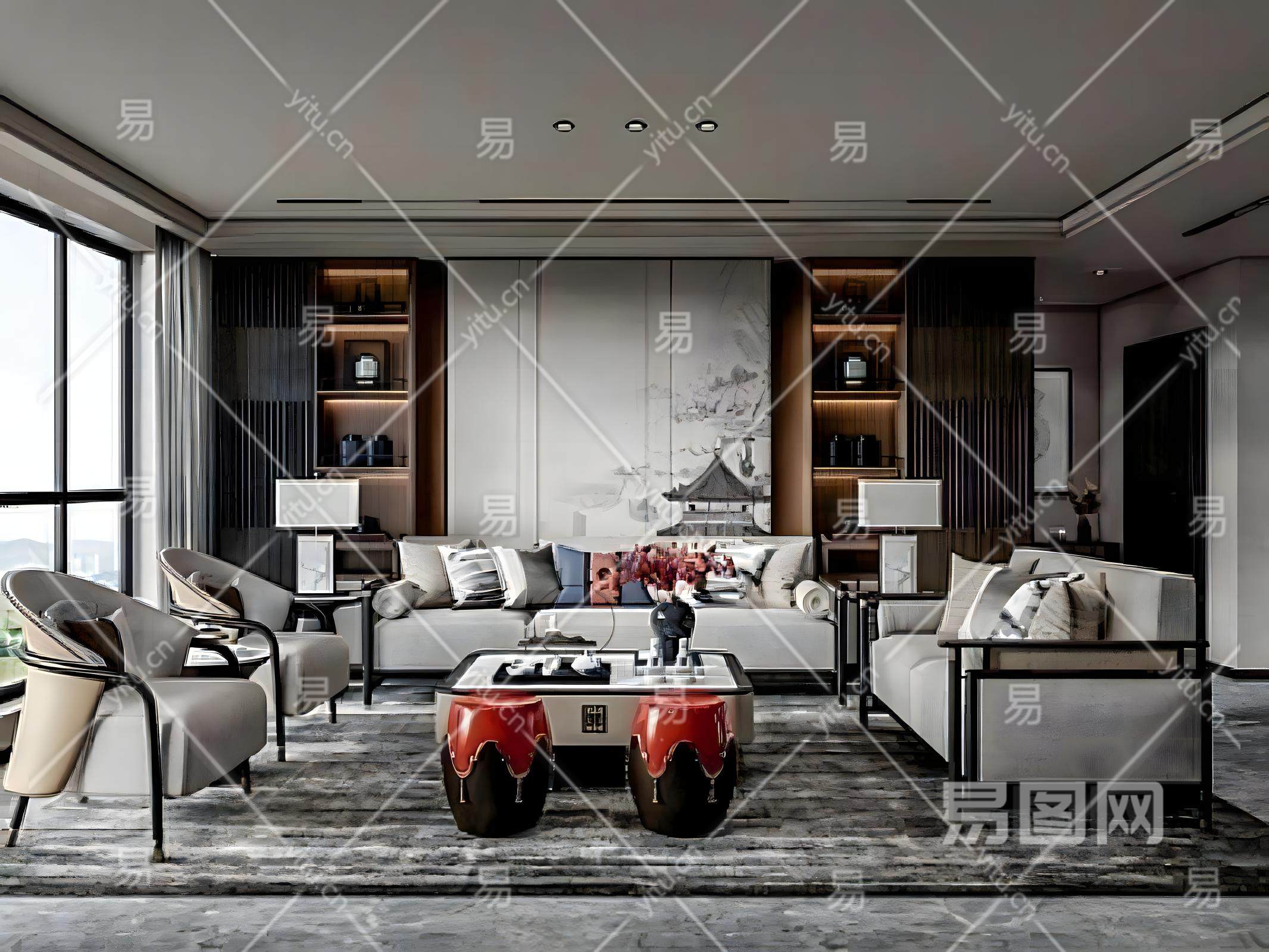当前的位置:首页 > sketchup > sketchup模型 > 家装 > 客厅 > 新中式客餐厅沙发茶几组合