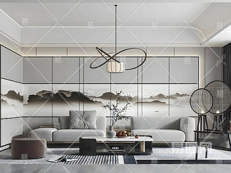 新中式客餐厅沙发茶几组合
