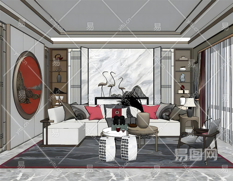 当前的位置:首页 > sketchup > sketchup模型 > 家装 > 客厅 > 新中式客餐厅沙发茶几组合