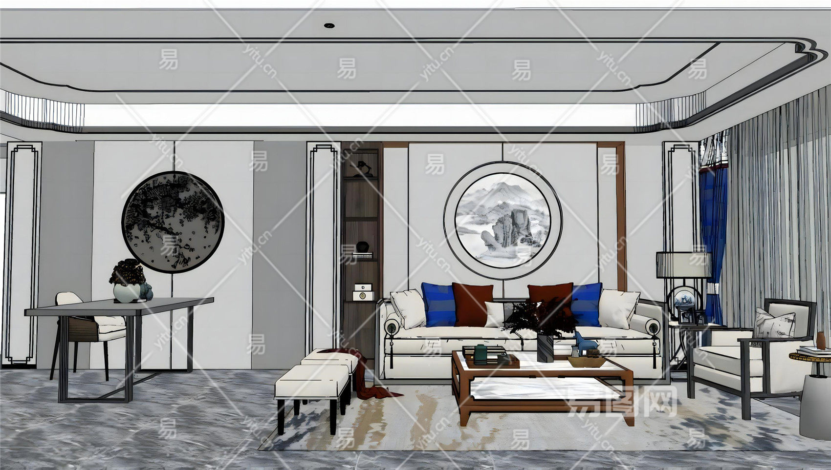 当前的位置:首页 > sketchup > sketchup模型 > 家装 > 客厅 > 新中式客餐厅沙发茶几组合