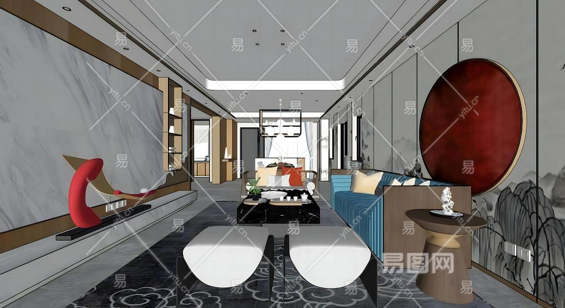 当前的位置:首页 > sketchup > sketchup模型 > 家装 > 客厅 > 新中式客餐厅沙发茶几组合