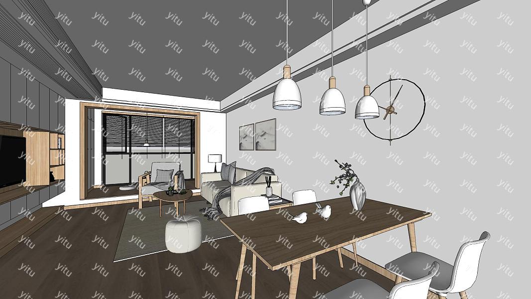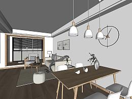 北欧客餐厅su模型,客餐厅sketchup模型下载