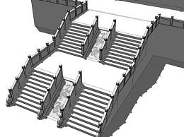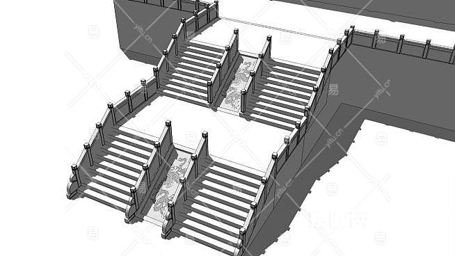 汉白玉楼梯栏杆su模型下载_sketchup草图大师SKP模型