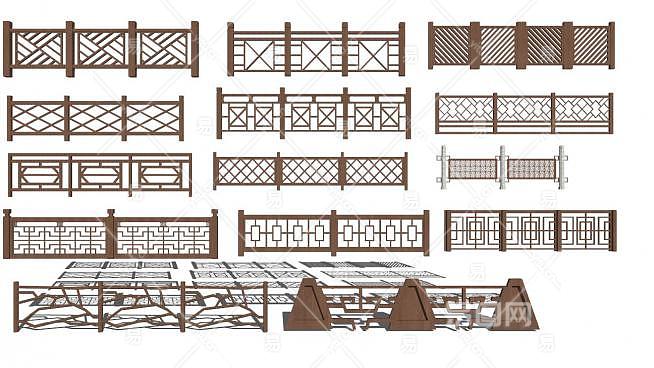 中式木栏杆设计su模型下载_sketchup草图大师SKP模型