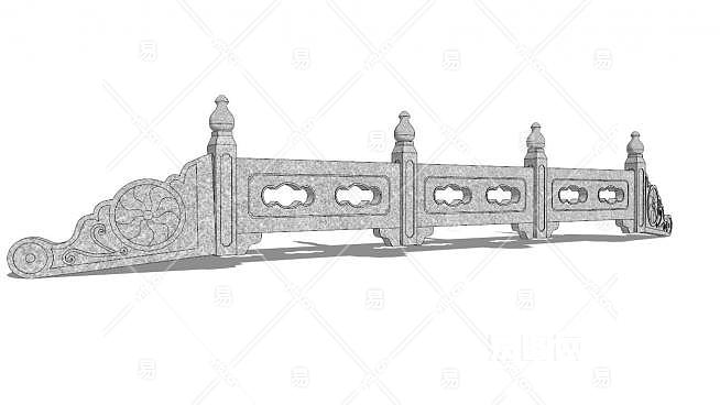 桥中式栏杆石栏杆SU模型下载_sketchup草图大师SKP模型