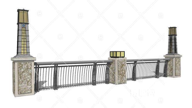 铁艺欧式围栏护栏栏杆SU模型下载_sketchup草图大师SKP模型