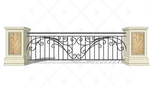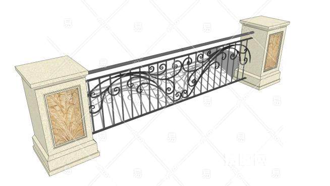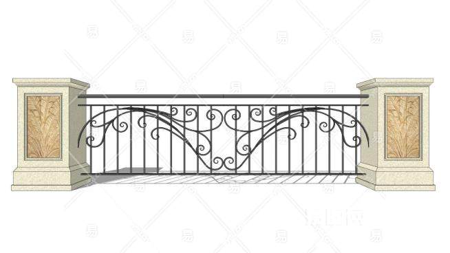 欧式小区铁艺围栏护栏栏杆SU模型下载_sketchup草图大师SKP模型