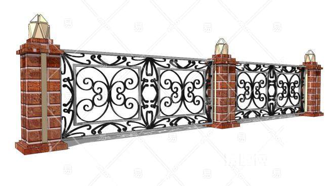 复古铁艺围栏护栏栏杆SU模型下载_sketchup草图大师SKP模型