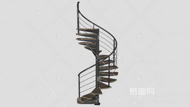 室内金属旋转梯旋转楼梯SU模型下载_sketchup草图大师SKP模型