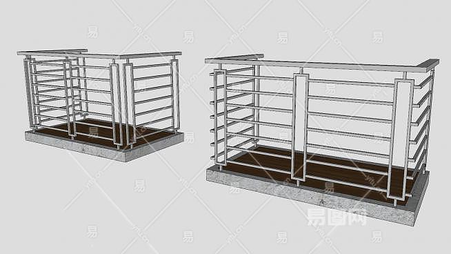 双阳台栏杆SU模型下载_sketchup草图大师SKP模型