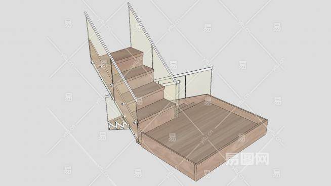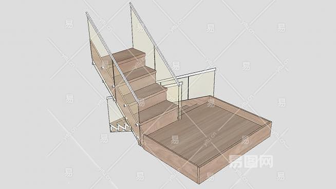 钢木双跑楼梯SU模型下载_sketchup草图大师SKP模型