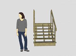 木板楼梯SU模型下载_sketchup草图大师SKP模型
