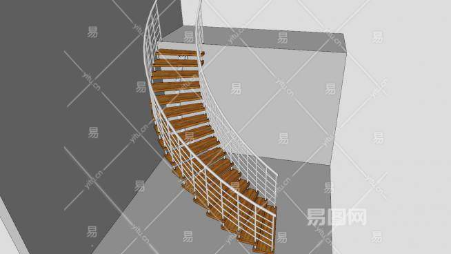 弧形钢木梯SU模型下载_sketchup草图大师SKP模型