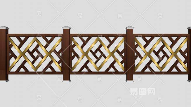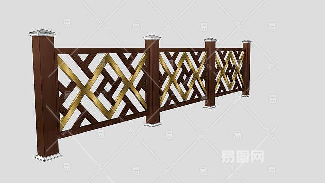 中式传统木制围栏SU模型下载_sketchup草图大师SKP模型