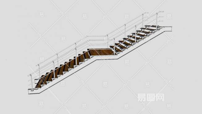 现代钢木扶梯SU模型下载_sketchup草图大师SKP模型