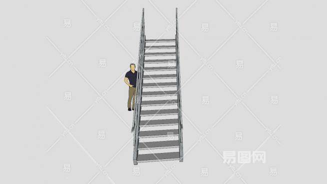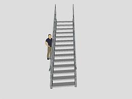 钢制直跑楼梯SU模型下载_sketchup草图大师SKP模型