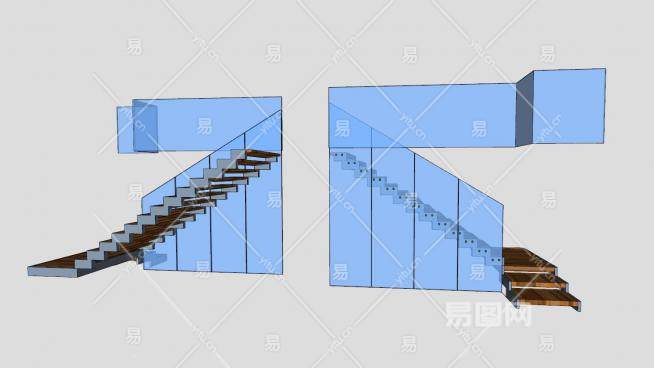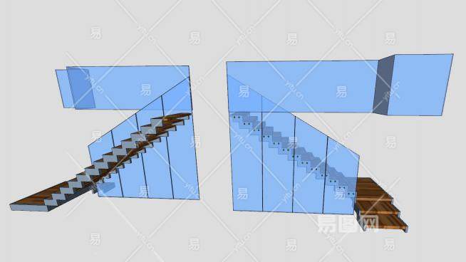 金属木楼梯与玻璃栅栏SU模型下载_sketchup草图大师SKP模型
