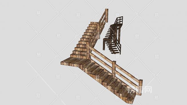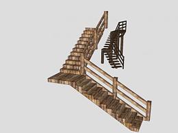 双实木扶梯SU模型下载_sketchup草图大师SKP模型