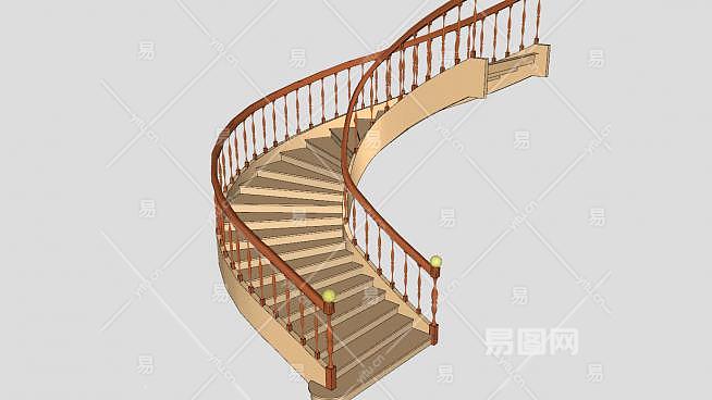 室内古典旋转扶梯SU模型下载_sketchup草图大师SKP模型