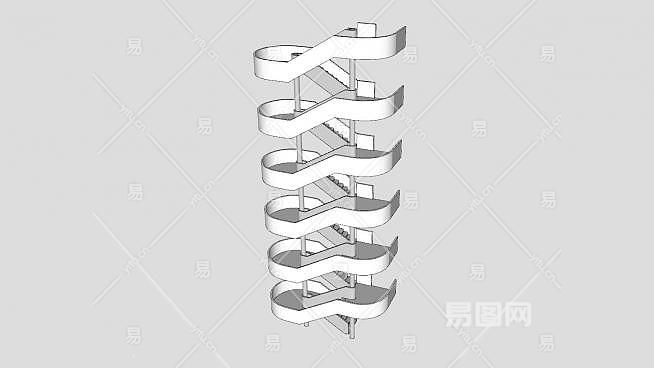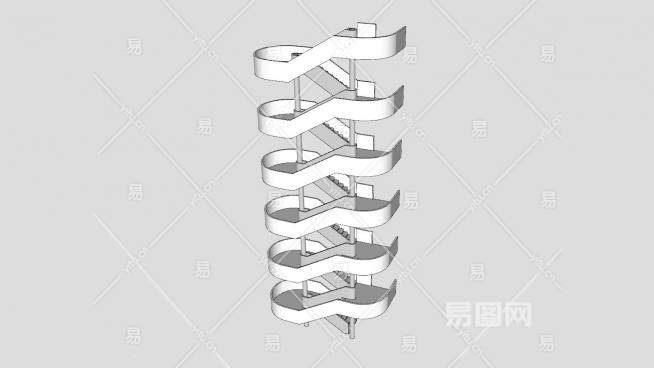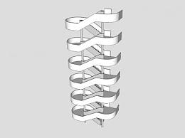 商场叠层式护栏楼梯SU模型下载_sketchup草图大师SKP模型