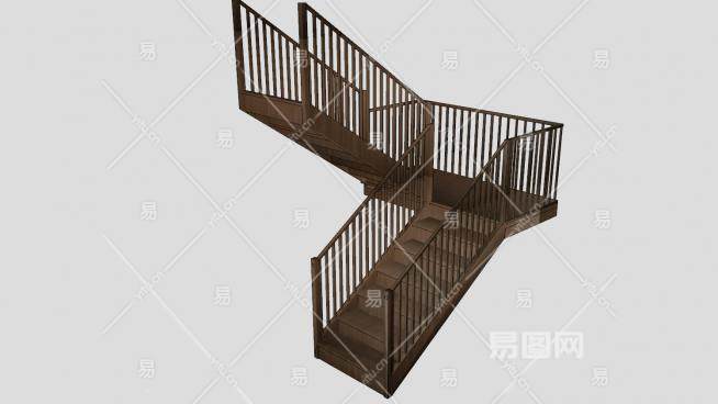 中式实木楼梯SU模型下载_sketchup草图大师SKP模型