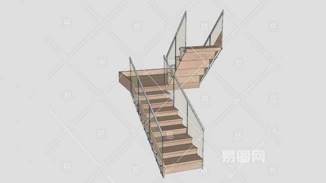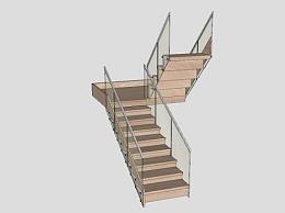 双跑玻璃护栏楼梯SU模型下载_sketchup草图大师SKP模型