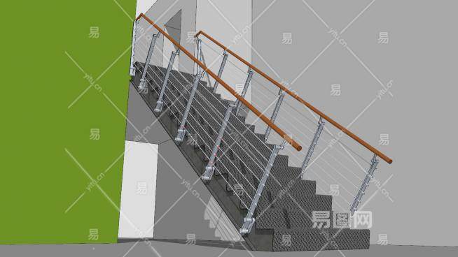 钢制护栏楼梯和木扶手SU模型下载_sketchup草图大师SKP模型