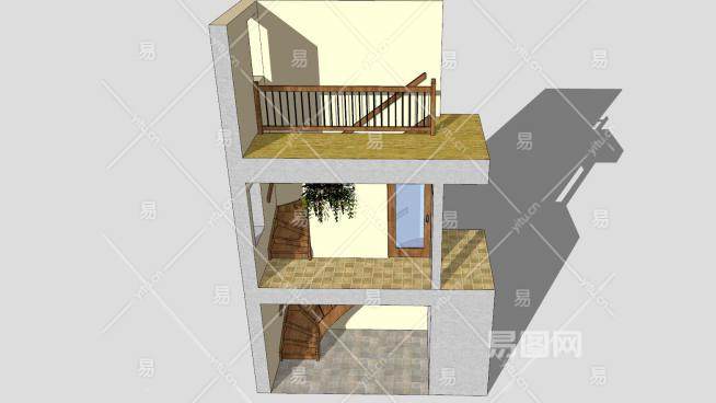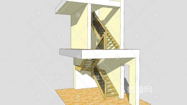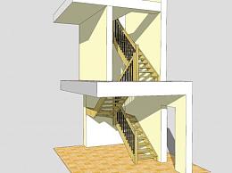 居民楼双跑楼梯SU模型下载_sketchup草图大师SKP模型