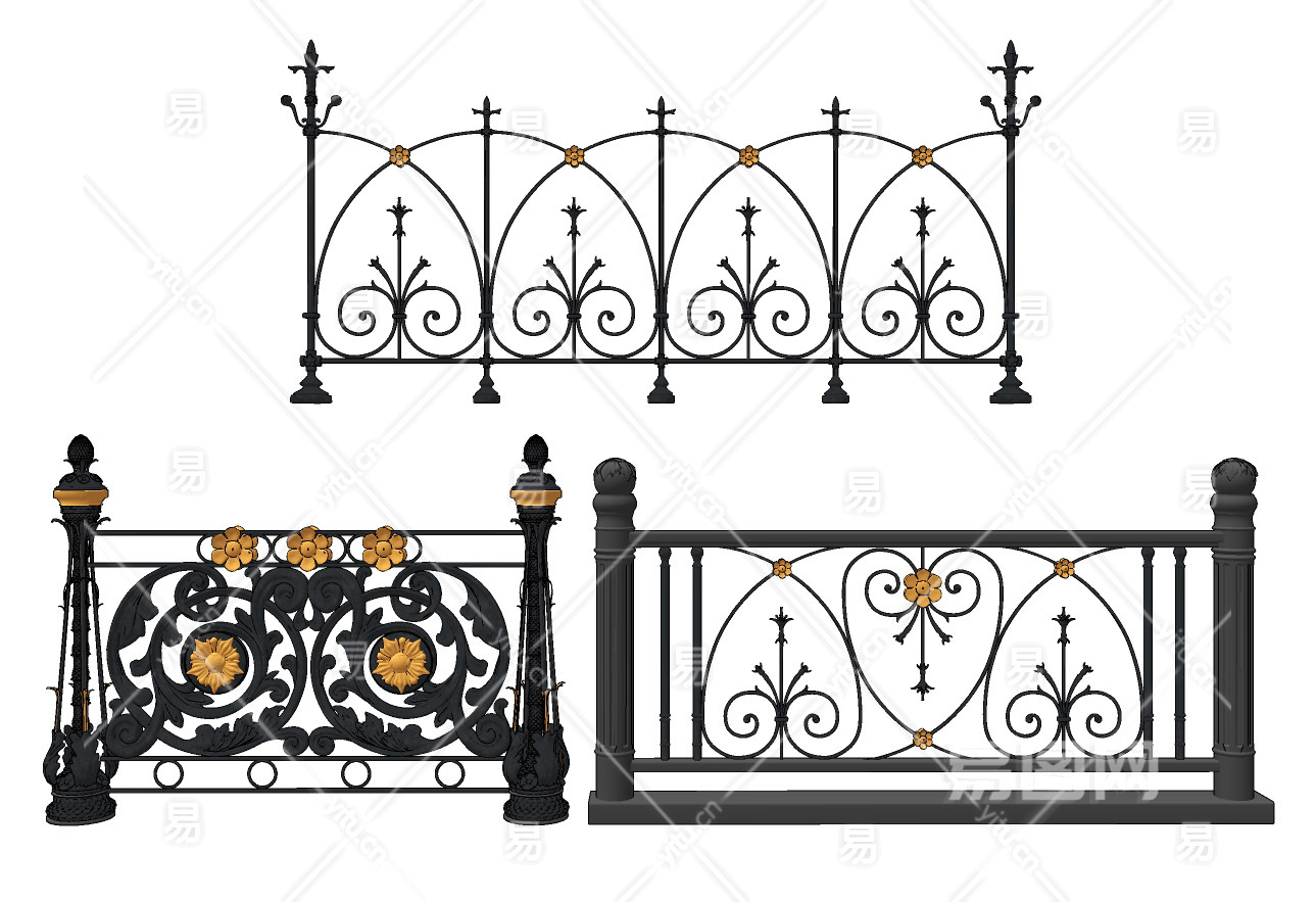 欧式雕花铁艺护栏su草图模型下载