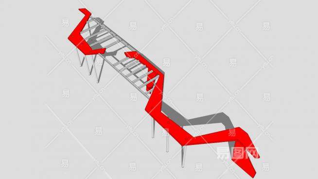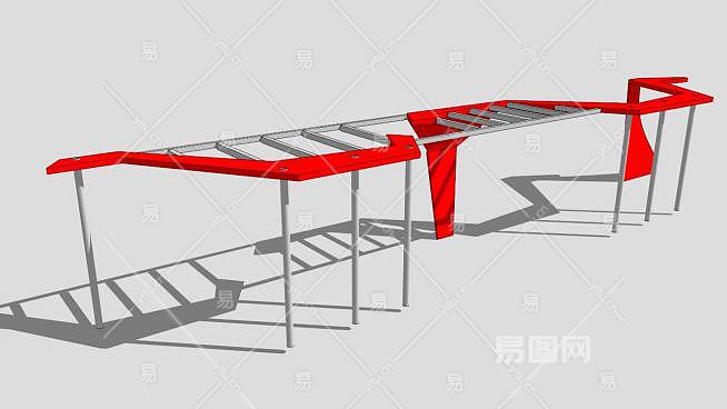 红色异形条形廊架SU模型下载_sketchup草图大师SKP模型