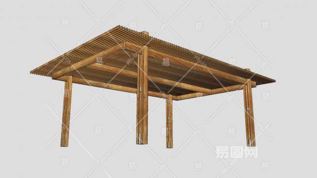 木制廊架挡棚SU模型下载_sketchup草图大师SKP模型
