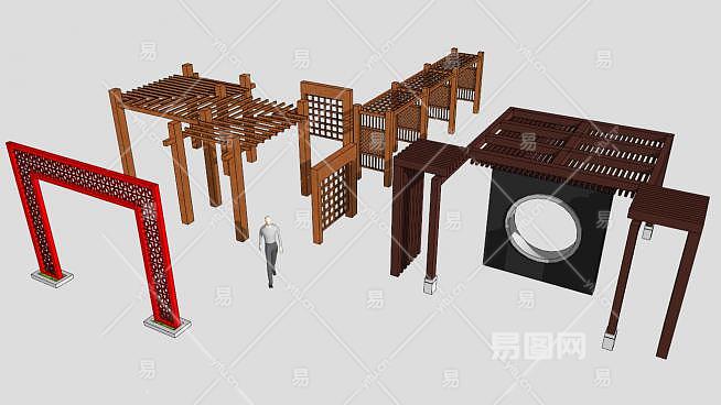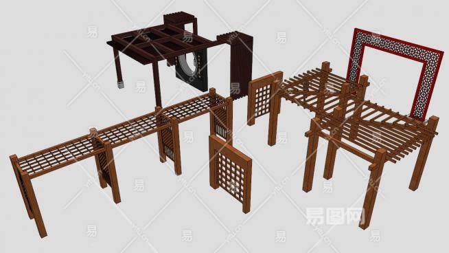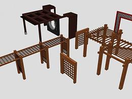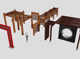 江南风格木质条形廊架SU模型下载_sketchup草图大师SKP模型