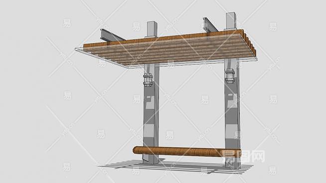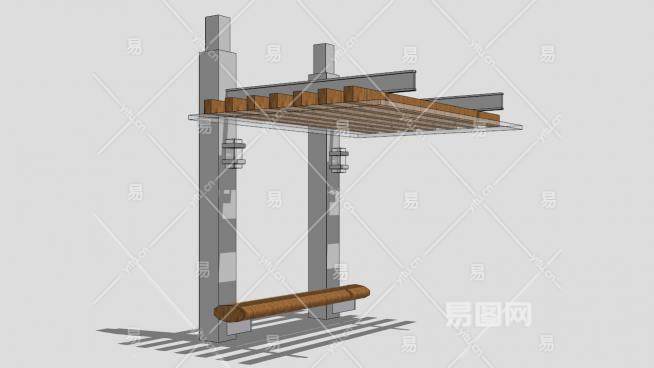欧式户外条形廊架SU模型下载_sketchup草图大师SKP模型