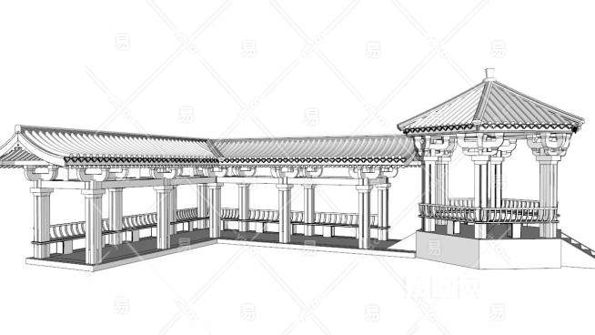 新中式回廊su模型下载_sketchup草图大师SKP模型