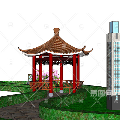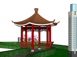 中式凉亭su模型