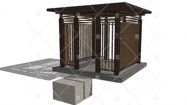 现代中式休憩凉亭SU模型下载_sketchup草图大师SKP模型